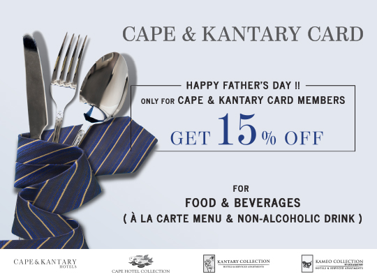 Only for Cape & Kantary Card Members Get 15% off for food & beverages ( à la carte menu & non-alcoholic drink )