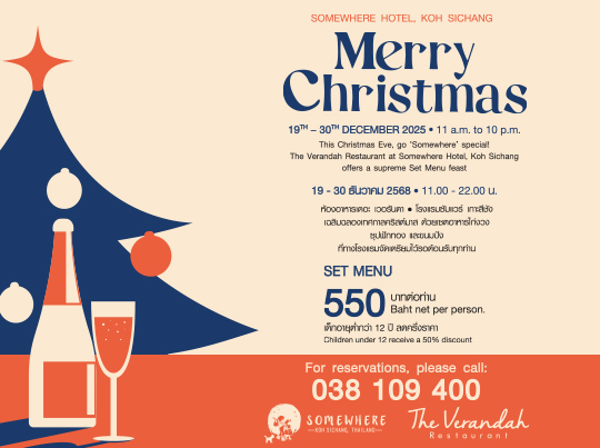 The Verandah Restaurant at Somewhere Hotel, Koh Sichang offers a supreme Set Menu feast